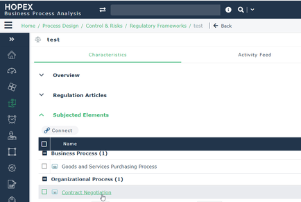 - the process / regulation framework link is indeed not available on the 'risk diagram' (which has a stronger 'risk' focus)